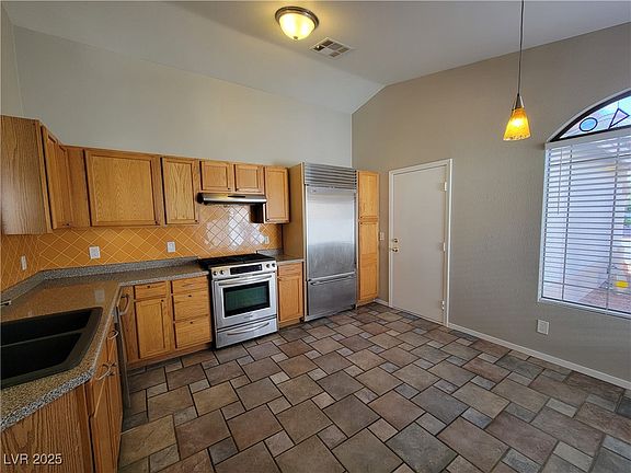 Synthetic lawnJetted tubCovered patioPalm treesUpgraded stainless steel appliancesBreakfast nook areaSub-zero fridge