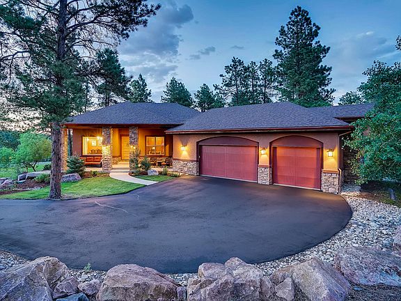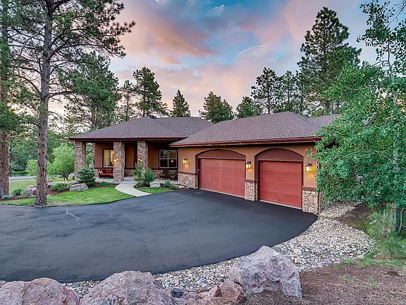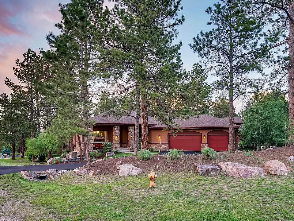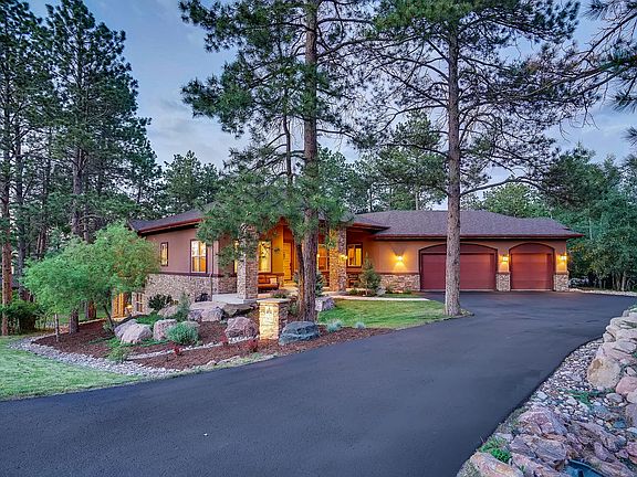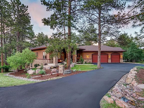 Welcome Home to Paradise! Your mountain-like home is minutes from everything! This beautifully finished meticulously maintained custom home offers it all! Walk through the grand door into the formal entry open to an expansive 12'ceilings throughout, great room with 17' vaulted ceiling & towering fireplace wall with floor-to-ceiling stack stone, hardwood floors, gorgeous 8' alder doors, 6" trim & spectacular cabinetry, large open gourmet kitchen with island, walk-in pantry & large breakfast nook leading to the back patio. Master retreat w/ sitting area, dual sided fireplace & 5 piece master bath is situated perfect on the mail level. A finished entertainers walk out basement offers a separate family room with fireplace, wet bar, theater, powder room, 3 bedrooms and 2 3/4 baths and a dry below patio. New roof, water heater & A/C will lower your energy costs. Enjoy your 1/2 acre lot nestled into the most desirable community in Larkspur, minutes to I-25 & in Douglas County School District.