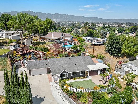 Stunning Hilltop Home with Panoramic Views! This beautiful 3-bedroom, 2-bathroom home is located on a hilltop in South Corona's El Cerrito, offering stunning panoramic views of the city. The home was built in 1987 and has been lovingly maintained by the current owners. This home features a spacious living room with a fireplace, a formal dining room, and a bright kitchen with stainless steel appliances. The kitchen opens up to a family room with sliding doors that lead to the backyard. The backyard is a great place to relax and enjoy the views on your hilltop deck. There is a wrap around patio, a built-in barbecue, and a fire pit with even more views. There are three bedrooms plus a bonus room and two bathrooms, both with dual flush toilets. The master bedroom has its own private bathroom and a walk-in closet. The other two bedrooms share a bathroom. This home is move-in ready with so many features! The brand new roof was put on in 2023, all new windows with dual pane, low E glass and new exterior doors, a water softener, washer, dryer, and refrigerator are included along with the stainless steel appliances. Thermostatically controlled, solar powered attic and garage exhaust fans, a 5-ton split system AC (installed in 2016) with regularly maintained bi-annual tune ups, tankless water heater (installed in 2021), Grey water irrigation system from the washer as well as drip irrigation helps you save on water bills while keeping your drought tolerant landscaping looking its best! Remote controlled ceiling fans, and LED lighting throughout the home both inside and out. Battery backed up garage door opener and surveillance cameras add to the function and safety of this home. Located within the boundaries of the top rated, award winning schools and a brand new Sheriff Dept less than a mile away. The circular driveway offers plenty of extra parking and more space to make this amazing outdoor, hilltop home the perfect place to live and entertain!