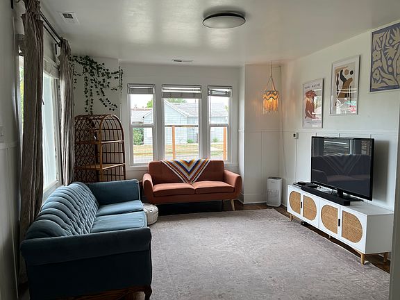 This 2 bedroom 1 bath 961 square feet home has a spacious front yard and back lot in a great location on Main Street in Midvale. It is a 5 minute drive to the freeway, 4 minute drive to top golf, 3 minute drive to Zions bank headquarters, and an 18 minute drive Salt Lake International Airport. The home has hard wood flooring and tile throughout. There is central AC and forced air gas heating. This single family home has many nice appliances including a fridge freezer, washing and drying machines, range oven, microwave, dishwasher, and garbage disposal. Free early move in available starting September 16th with rent starting October Ist. Small dogs are allowed. The tenant is responsible for utilities and maintaining the yard. Landlord does not live on site.