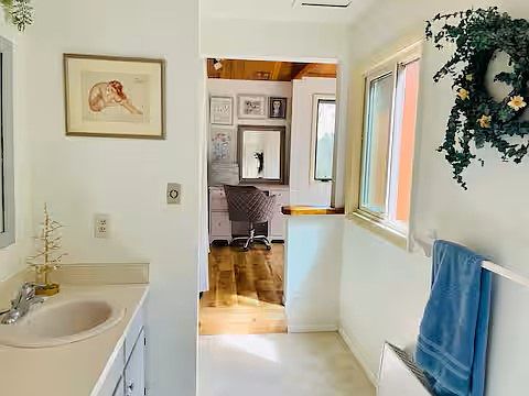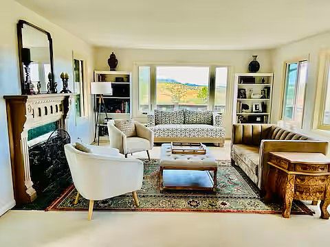 This hilltop home has a wonderful views of the red rocks, spa and acre of land. It has four bedrooms with the master suite and bathroom on the top floor. The multi-floor layout has restored fireplace and bright window-filled living room with 180 degree panoramic views. The great room includes kitchen, family and dining room on the main floor. Stepping down from the great room is the 2nd bedroom, bathroom and laundry room. And the lower floor has two additional bedrooms. The two-car garage is attached to the house through a Florida room. Renter pays for utilities