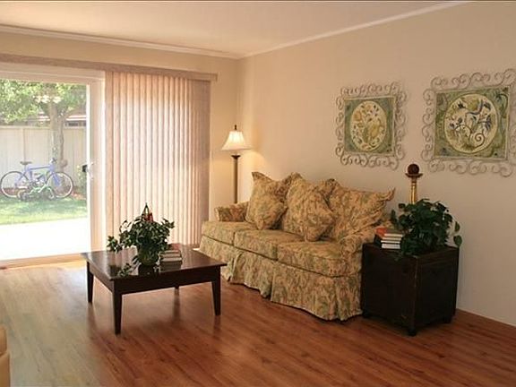 Wonderfully updated townhome within walking distance to Top-Rated Cupertino schools: Lincoln elementary, Kennedy middle and Monta Vista High. This rare end unit features the great feel open and flow of the highly sought cathedral ceiling with tons of natural light, rich commercial wood floors, remodeled kitchen/baths with beautiful granite countertops, Oak cabinetry, double pane windows, crown moldings, top brand Whirlpool appliances, freshly painted interior, enjoying private backyard with lush level lawn, roses, trees, flowers with convenient proximity to community pool, minute from the De Anza College. So why rent?