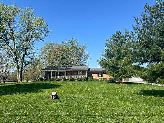 2BR custom built brick ranch can be 3BR OR enjoy as in-laws quarters w/private entry via a 1-car attached garage; OR primary BR w/attached sitting room; OR present use as family room (wood-burning stove removed, can be restored), there are so many possibilities! Sun-drenched country kitchen complete w/appliances, laundry room featuring built-in overhead cabinets + washer/dryer. Oak hardwood floors under great room carpet. Updated bath with oversize ceramic tile shower. Full basement features extra ceiling height await your finishing touches! 3-Car attached garage (2-car attached to 1-car attached for a total 3-car attached garage). BIG storage shed + attached storage area perfect for riding mower. Enjoy the scenic 1.5 AC lot from a ginormous covered front porch or from the covered back porch. Convenient access to I-74, Pleasant View, Fairland, Shelbyville, Greensburg, New Palestine, and Downtown Indy. Rural living and close to retail, restaurants, entertainment; within 5-minutes to the casino & Horseshoe racing. Triton (Northwestern Consolidated SD) Schools.