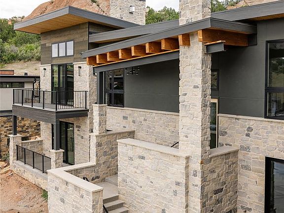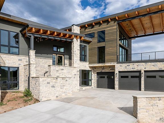 Radiating with alluring views of the golf course, mountains and downtown, this bi-level, new construction home with elevator access sits within the gated Ravenna golf community. A striking exterior invites entry into the landing where steps ascend to a great room flaunting soaring ceilings and a statement floor-to-ceiling stone fireplace. Expansive glass doors fully open to a large, covered deck showcasing stunning views. Gracious storage is offered in a sleek kitchen with a vast island, pantry, adjacent dining area and access to the back patio with an outdoor kitchen. Soak in picturesque views from the luxurious primary suite featuring a fireplace and a spa-like, 5-piece bath connecting to a walk-in closet and laundry room. The main level is complete with an en-suite bedroom with a walk-in closet, a versatile third bedroom/office and a powder room. Entertainers delight in a spacious, above-grade lower-level living area boasting large windows, elevator access to the upper level and a wet bar with a dishwasher, ice maker and beverage cooler. An expansive and flexible bedroom with a full en-suite bath, walk-in closet and sliding glass doors to a private patio offers the potential for an oversized gym or a guest suite. The lower level also includes a fifth bedroom, a ¾ bath and a mudroom. Planned landscaping elevates this masterpiece further.