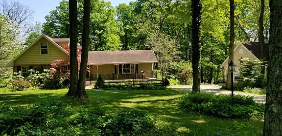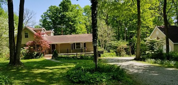 Built When Quality Was The Rule,Not the Exception.Nestled among many stately trees, this 1.5 Story Custom Brick/Vinyl Home features newer front decking.1st Floor Master w/Master Bath,DD Sinks & Tiled Shower.Fireplaced Family Room w/Skylights, Living & Dining Rooms boast hardwood floors, eat in country kitchen w/appliances. 2 car oversized det garage & walkout Full unfin Basement w/Workshop,Full Shower Bath & FisherWood Burning Stove.Rear Wood deck.Up 2 BR & 1 full tub bath. 1YR.RWS Home Warranty.W/D(Gas)Hookup off MBR. Water Heater Gas(City).