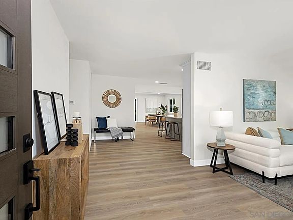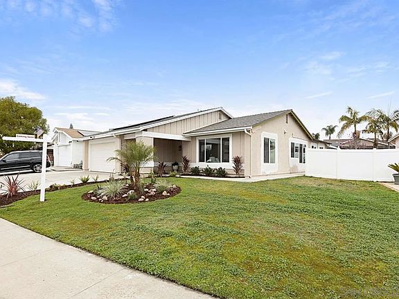 Welcome to 7876 Backer Rd, a beautifully renovated three bedroom, two bathroom home offering 1,490 sq.ft. of modern living space in the heart of Mira Mesa. Step inside to discover a bright and airy open floor plan, featuring all-new luxury vinyl plank (LVP) flooring, recessed lighting, dual-pane windows, and doors throughout. The spacious living room flows seamlessly into the kitchen and dining areas, where you'll find brand-new kitchen cabinets, smart stainless steel appliances (including a wine refrigerator) and island counter space with barstool seating. The two fully renovated bathrooms offer modern fixtures and finishes, with the primary suite bathroom featuring an extended walk-in shower. A private fenced backyard with updated irrigation and landscaping surrounds the freshly-painted exterior. Two-car garage with full washer & dryer included, with space for two more vehicles in the driveway. Leased solar installed on roof to offset electric bills! Nestled in a quiet, residential neighborhood, this home is located just minutes away from schools, shopping centers, parks, and major freeways, with easy access to everything Mira Mesa and San Diego have to offer.