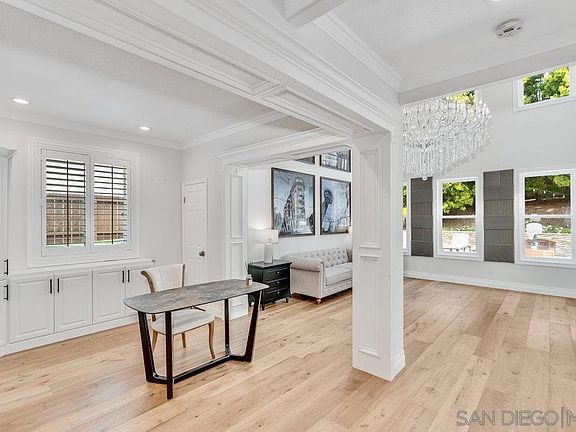 Prime Location! Nestled in the highly sought-after La Costa Valley neighborhood, this beautifully fully remodeled 5-bedroom, 3-bathroom home is truly turnkey. Flooded with natural light and boasting soaring ceilings, the open and inviting layout is perfect for modern living. The main level features a spacious family room, a stylish kitchen with stainless steel appliances, a formal dining room, and a convenient downstairs bedroom. Custom built-ins add charm and functionality throughout. Upstairs, the luxurious primary suite offers a spa-like bathroom and generous closet space. The additional bedrooms are well-sized, providing comfort and ample storage. Step outside to a private backyard oasisperfect for entertaining with an outdoor seating area, built-in BBQ, and plenty of room to relax. A long driveway provides extra parking, adding to the homes convenience, fully paid solar and new windows. Situated within walking distance to The Forum shops and top-rated elementary schools, and just minutes from stunning beaches, shopping, dining, and easy freeway accessthis home truly has it all!