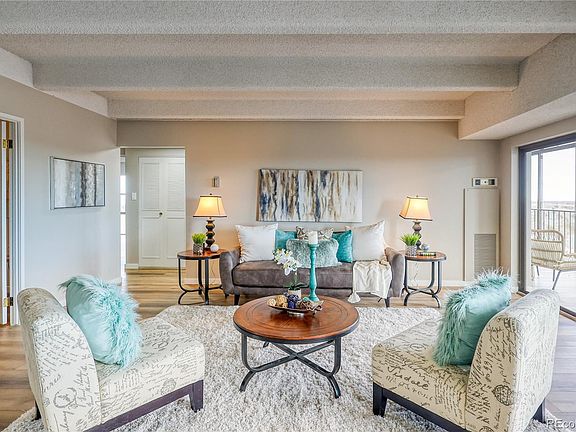 Experience the serenity and assurance of 24-hour gated security, within a professionally manicured resort-like community. Ideally situated, this central location offers easy access to Downtown, the Cherry Creek area, and a variety of shopping, dining, parks, and entertainment options. Just a few steps away is the Highline Canal, perfect for invigorating runs, leisurely walks, scenic bike rides or stroll around the seven-acre expanse of the common grounds. This home has been thoughtfully updated to feature brand new carpeting, upscale luxury vinyl flooring, and contemporary paint throughout. This unit has two bedrooms plus a bonus room that can be used as a den office, bar/lounge or reading room. The open layout is designed for comfort, including a spacious living area and the added convenience of in-unit laundry. The primary bedroom is a private retreat, with a full ensuite bathroom and ample closet space. Enjoy the abundance of natural light and stunning panoramic views of the sunrise from the full-length sun porch, perched on the 12th floor with floor-to-ceiling windows. Enjoy the unique perspective from this corner unit, which opens to the north and east, offering views of the common grounds, sports courts, and the eastern plains. The living and dining area flow seamlessly together, leading to a versatile extra room that can be transformed into a den, office, or wet bar area. The walkthrough galley kitchen has abundant counter space and storage. Parking is a breeze with two reserved covered parking spaces, an additional outdoor space, and ample guest parking. Extra conveniences include two separate storage units. The array of amenities is truly impressive, featuring a Koi pond, water fountain, outdoor entertainment area, sports courts, fitness center, indoor swimming pool, Jacuzzi, hot tub, sauna, a party room available for rent, community grills, card tables, and pool tables—all designed to enhance your Colorado lifestyle.