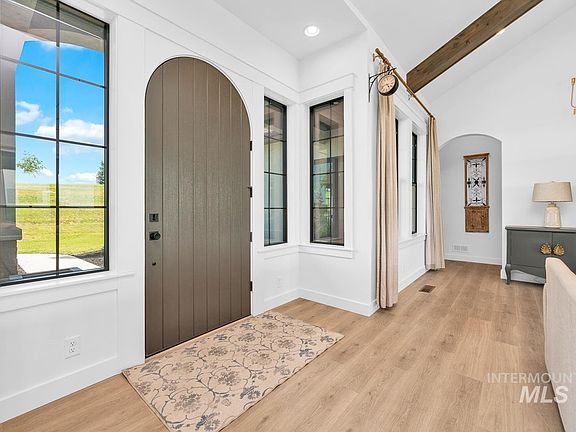 Experience breathtaking sunrises and sunsets with expansive, peaceful views from this stunning single-family home on acreage. Inside, you'll find 8-foot doors, vaulted ceilings, and exquisite Gray Locke custom cabinetry throughout. The chef’s kitchen features premium Thermador wood paneled appliances, double ovens (including steam), a waterfall quartz island, and a luxurious butler’s pantry. The master bath is a true retreat with hydraulic floor heat, under-cabinet lighting, and soft-close cabinetry. A versatile block-off apartment or mother-in-law suite offers extra privacy and flexibility. The home includes two furnaces, two water heaters, and thermal custom drapes for year-round comfort. Step outside to a spacious attached garage and a high-end, heated, 2400 sq ft insulated custom shop with a loft and RV bay. With no CCRs, a horse corral, and ample room for equipment and RV parking, this property delivers both freedom and function surrounded by serene cornfields.