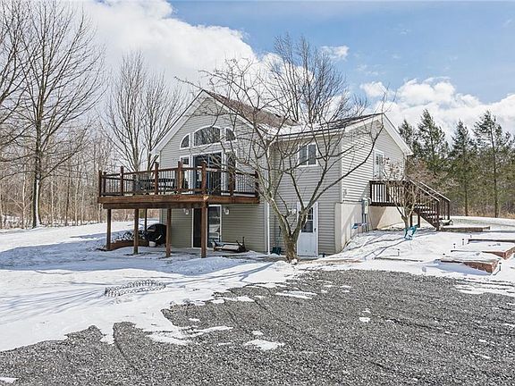 Fabulous setting and location! Fully updated kitchen with granite counter tops and new cabinets. Updated bath with new floor and vanity. New furnace, propane hot water tank, air conditioner and water system. Newly installed attic insulation. Vaulted Great Room & french doors to deck and terrific views. Fully finished lower level adds another 600sqft ! Family room with gas fireplace, patio & extensive landscaping, stocked pond, 16x16 shed on 2.5 acres.