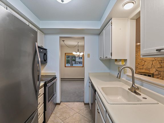 Cedar View Estates – 2BR/1.5BA Townhome with Garage and Private Backyard Well-maintained townhouse in desirable Cedar View Estates. This home offers an open floor plan with a spacious living area and slider to a private backyard. The kitchen features shaker-style cabinets, stainless steel appliances, and brand new, full size, in-unit washer and dryer. Includes two bedrooms, 1.5 baths, and an oversized one-car garage with additional adjacent parking. Efficient heating and cooling with individual AC units. Stone Fireplace. Community amenities include a swimming pool, tennis courts, clubhouse with sauna and exercise room, and landscaped common areas. HOA covers water, sewer, garbage, and snow removal for low-maintenance living. Brand new roof in 2025. Convenient location with excellent community features—move-in ready and easy to show!