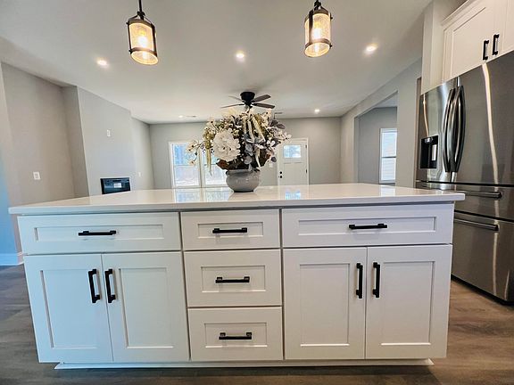 Come fall in love with this beautiful new Craftsman-style 3BR/2BA home built on a quiet 1.1-acre lot in the highly desirable Sunset Pointe waterfront community. Open floor plan, 9 ft ceilings, dimmable lights and ceiling fans in every room including porch. Cozy Fireplace in living room, Gourmet kitchen with stainless steel appliances, built-in microwave oven combo, large kitchen island. Spacious primary suite with tray ceiling, two walk-in closets, and a bathroom with double sink vanity, soaking tub, and separate shower. Garage access to large unfinished attic. This property is conveniently located minutes from public lake access, shopping, dining, and schools. Peaceful and private -- a must see! Listing agent is related to the seller.