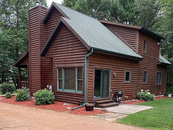 1 1/2 story log home with lake view and access without the lake taxes. Open kitchen/dining and living room. Main floor laundry, large private master suite and bath on second level, large finished basement with custom bar, office/game room/family room. Oversized 3 car garage. Large front porch with lake view. Large concrete firepit area, large yard for lots of activities, sprinkler system, option for pier across the street, close to petenwell county park