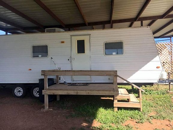 You do not want to miss this perfect get-away for a fishing trip to the lake! This 8'' x 32'' travel trailer offers a bunk-bed that sleeps two, a full-size bed in the master room, and an easily accessible kitchen and dining area. With a $50 monthly lease that includes water and a public septic, a 40'' x 40'' awning, and a storage shed this is definitely an awesome steal! Call Bridget today to schedule a showing of this property that offers relaxation as well as a fun weekend vacation!