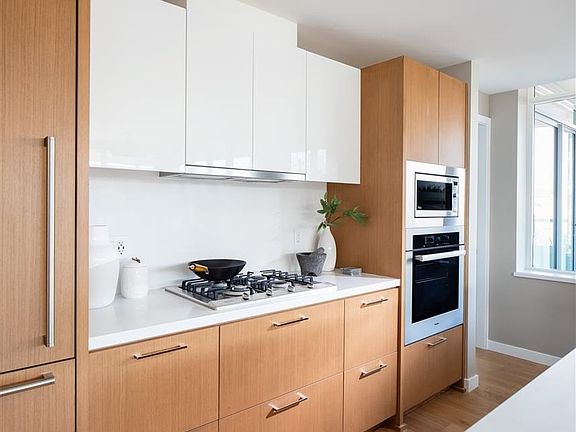 Presenting Evelyn by the award winning Onni Group, West Vancouver's premier community, nestled into the greenery just north of Park Royal. The North facing suite is beautifully appointed and spacious with an open concept floor-plan complemented by an extensive terrace perfect for outdoor entertaining. Gorgeous wide plank oak hardwood flooring flows throughout, and the kitchen features a Sub-Zero fridge and a Miele gas cooktop. The master bedroom offers a luxurious en-suite with marble countertops and a walk-in closet. Additional interior features include a full size washer/dryer, Savant Home Tech system, automated lighting and sound control with built-in speakers.