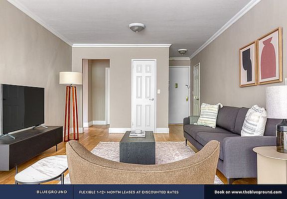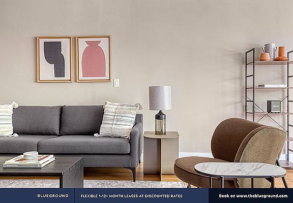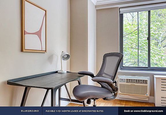 We offer custom pricing for any duration. Rates may vary upon exact move in and move out dates. The rate for this home starts at $7,670* / mo. Please visit our website and enter your dates of stay to see up-to-date pricing for your specific booking. *Price quoted is: (1) based on moving in the first day the unit becomes available, (2) applicable only if billed upfront; can be higher if billed in multiple payments, (3) exclusive of any taxes or utilities. Brokers are welcome! We pay 5% commission on the rent. Show up and start living from day one in Uptown with this sophisticated two-bedroom Blueground apartment. You'll love coming home to this thoughtfully furnished, beautifully designed, and fully-equipped Upper West Side home. (ID #NYC812) Designed with you in mind Gorgeous furniture, fully-equipped kitchen, smart TV, and a premium wireless speaker are just a few of the amenities you'll find inside this two-bedroom apartment. Ideally located in Uptown, you'll find a lot to love outside as well. When you're ready to relax, you'll be happy to discover every Blueground bedroom comes with superior quality mattresses, luxury linens, and cozy towels. We handle everything so you can simply show up and start living. *Sleeping Arrangements* - Queen Bed, 63in/160cm - Double Bed, 55in/140cm *Amenities* Building amenities unique to this two-bedroom include an on-site: - Doorman - Dryer in building - Elevator - Gym - Washing machine in building - Pets allowed - Playground *Arrival and ongoing support* The entire apartment is yours to enjoy! You'll either be personally greeted by a Blueground team member or given self check-in instructions. Throughout your stay, you'll have access to our Client Experience team through the Blueground App. You can schedule additional cleanings, submit maintenance requests, and view our neighborhood recommendations with just a few taps. We'll share all details upon confirmation of your stay. *Ideally Located* This furnished property is on the Upper West Side, one of the greenest parts of Manhattan. Nestled between Riverside Drive and Central Park, the area attracts residents seeking a quieter neighborhood. Beautifully maintained brownstones and an abundance of good schools make it a preferred choice for families. Popular cultural attractions include the Natural History Museum and Lincoln Center. In addition, Columbia University and Barnard College are at the north end of the neighborhood and about a 15 minute ride on the subway. *Other things to note* Building amenities may have an extra cost. This Blueground apartment has flexible lease options, allowing you to book it for one month, a year, or more. This Blueground apartment has flexible lease options, allowing you to book it for #one month#, a year, or more. Pets are welcome, though weight limits and breed restrictions apply and may incur fees. Brokers CYOF. We take great pride in ensuring every photo displayed is shot in our own apartments with our actual furnishings. That said, we regularly refresh our decor and furniture arrangement, which may differ from whats pictured.