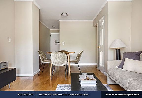 We offer custom pricing for any duration. Rates may vary upon exact move in and move out dates. The rate for this home starts at $6,410* / mo. Please visit our website and enter your dates of stay to see up-to-date pricing for your specific booking. *Price quoted is: (1) based on moving in the first day the unit becomes available, (2) applicable only if billed upfront; can be higher if billed in multiple payments, (3) exclusive of any taxes or utilities. Brokers are welcome! We pay 5% commission on the rent. Discover the best of Uptown, with this two-bedroom Upper West Side apartment. It'll be easy to simply show up and start living in this modernly Blueground furnished apartment with its fully-equipped kitchen, beautiful living room, and our dedicated, on-the-ground support. (ID #NYC896) Designed with you in mind As with any Blueground apartment, you'll find a thoughtfully designed space complete with beautiful furniture and a fully-equipped kitchen in this two-bedroom property. And, thanks to our superior quality mattresses, luxury linens, and towels, you can relax knowing you'll always feel comfortably at home. When you're ready for some fun, you can take in the Uptown vibes or bring the entertainment to you with the premium wireless speaker or smart TV. *Sleeping Arrangements* - Queen Bed, 63in/160cm - Queen Bed, 63in/160cm *Amenities* Building amenities unique to this two-bedroom include an on-site: - Doorman - Dryer in building - Elevator - Gym - Washing machine in building - Pets allowed - Playground *Arrival and ongoing support* The entire apartment is yours to enjoy! You'll either be personally greeted by a Blueground team member or given self check-in instructions. Throughout your stay, you'll have access to our Client Experience team through the Blueground App. You can schedule additional cleanings, submit maintenance requests, and view our neighborhood recommendations with just a few taps. We'll share all details upon confirmation of your stay. *Ideally Located* This furnished property is on the Upper West Side, one of the greenest parts of Manhattan. Nestled between Riverside Drive and Central Park, the area attracts residents seeking a quieter neighborhood. Beautifully maintained brownstones and an abundance of good schools make it a preferred choice for families. Popular cultural attractions include the Natural History Museum and Lincoln Center. In addition, Columbia University and Barnard College are at the north end of the neighborhood and about a 15 minute ride on the subway. *Other things to note* Building amenities may have an extra cost. This Blueground apartment has flexible lease options, allowing you to book it for one month, a year, or more. This Blueground apartment has flexible lease options, allowing you to book it for #one month#, a year, or more. Pets are welcome, though weight limits and breed restrictions apply and may incur fees. Brokers CYOF. We take great pride in ensuring every photo displayed is shot in our own apartments with our actual furnishings. That said, we regularly refresh our decor and furniture arrangement, which may differ from whats pictured. Also note: Ongoing construction in close proximity; construction sounds may occasionally be heard