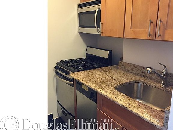 This VERY SPACIOUS studio with 1 bath has a very open kitchen layout with modern appliances. Located in an elevator and doorman building with a laundry facility as well!