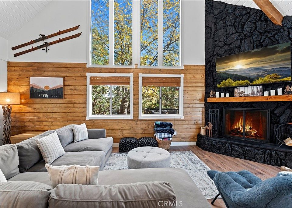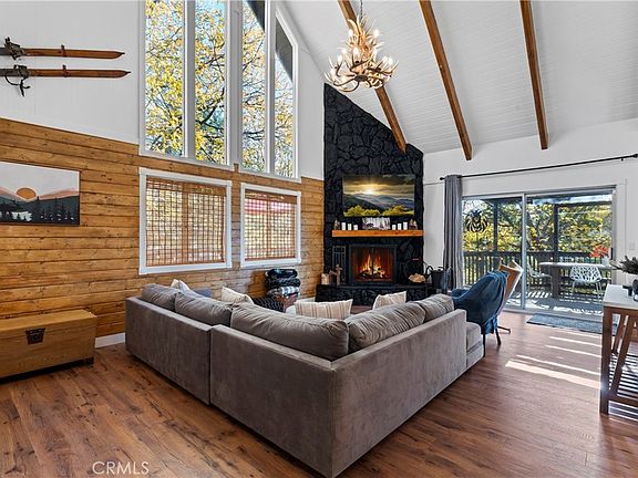 Gorgeous Lake Arrowhead retreat with coveted lake rights. This turnkey, Central AC throughout, fully furnished 4-bedroom, 3-bath residence sits on a private corner lot and showcases vaulted ceilings that fill the home with light. The main level features a breathtaking family room with a cozy fireplace, an open kitchen and dining area that flows seamlessly outdoors, and convenient main-level laundry. Step outside to an expansive patio deck perfectly positioned to capture beautiful mountain views and the serenity of the pines. With an attached garage, parking for four vehicles, and abundant privacy, this home is ideal for a big family, weekend hosting, or a peaceful full-time retreat. Enjoy the ultimate Lake Arrowhead lifestyle with exclusive lake rights for boating, swimming, and lakeshore relaxation, all in a tranquil and inviting setting.