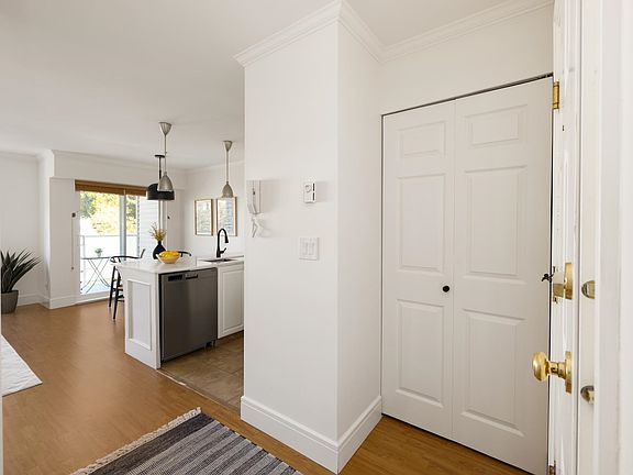 Laminate flooringCrown mouldingsFresh white kitchenNew appliancesNew countertopsBack splashGood sized second bedroom
