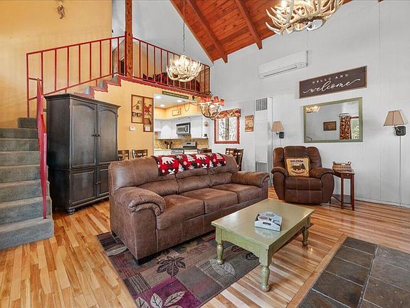 Another price reduction for all buyers out there! Seller is super motivated and willing to negotiate! Great Big Bear feel to this Sugarloaf cabin! Just steps from the national forest and sitting on a spacious double lot with room for RV parking, it's a great place to unwind and relax and get away from the craziness! There's something special about sitting on a lovely deck~listening to the wind go through the pines and the birds chirping~enjoying the sights & sounds of nature! This upgraded cabin offers that & MORE! Boasting 2 bdrms (1 a loft) w/room to sleep & gather, 1- 1/2 bathrms each w/upgraded vanity, fixtures, tile floors & electric heaters to keep you toasty. The ''Great Room'' floorplan opens to updatedkitchen w/granite slab counters, tile backsplash & newer range & microwave/hood. The Amazing soaring tongue & groove wood ceiling, artful lighting, shiny wood floors, rock fireplace w/slate hearth, access to the National Forest at the top of the road AND the experience of relaxing in the outdoor spa w/the star-filled night sky above delivers MTN LIVING AT ITS BEST!! Unleash your creative side in the fantastic artist studio/workshop w/ locked storage area or make it a bunkroom for extra guests (has electrical). Upgrades include 30 yr roof, heater, ceiling fan, expansive deck, 200-amp electric panel & smart thermostat. Great for you and your family to enjoy and/or rent out for visitors to enjoy! Thanks for showing! Feedback for seller is appreciated!