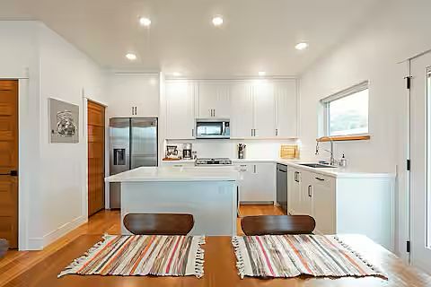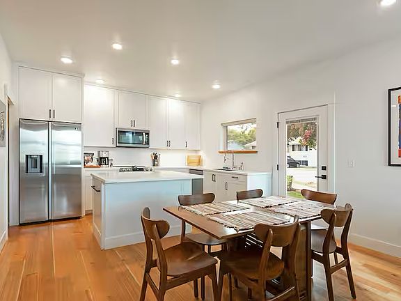 This home is centrally located in Missoula, only minutes to downtown, and area hospitals. This home brings a modern vibe and high quality furnishings and finishes. The main floor of this 3 bedroom 2.5 bath home feels bright and airy with an open floor plan and a well-appointed kitchen featuring new appliances and plenty of counter space, a dining area, and a cozy living room allowing a space for communal gathering, cooking, dining, and entertainment. There are 3 comfortable bedrooms on the second floor with a walk-in closet and a large bathroom in the primary. The second bedroom has a double bed and the third has a twin bed with a trundle bed and a desk. The balcony features Mountain views, comfortable seating a hammock for relaxation. With a state of the art sauna in the master en-suite bath, you can find yourself relaxing after a long day.