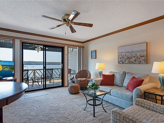 LAKEFRONT LIVING WITH STUNNING VIEWS! This beautifully furnished 2 BD, 2 BA lakefront condo is perfectly positioned just one flight down from parking & offers an unobstructed, HUGE view of the Grand Glaize Arm—no dock in front of your unit to block the scenery! Enjoy breathtaking sunsets from your private deck, & get ready for front-row seats to the annual Shootout in its new location. Situated in the No Wake portion of the Grand Glaize Arm, you're just minutes from the calm waters of the State Park—ideal for swimming, tubing, or relaxing in your favorite cove. And w/fall around the corner, it’s the perfect spot to watch the leaves change across the water. This unit comes fully furnished and move-in ready, making it an easy weekend getaway or full-time residence. A 12x36 boat slip with a 6,500 lb Captain's Choice Remote lift is included, and the HUGE new community pool is perfect for cooling off after a day on the lake. Located in the heart of Osage Beach, you’ll have easy access to shopping, dining, and all the lake has to offer. Don’t miss this opportunity to own one of the best views at the lake! Purchase the boat (2000 Sea Ray 215 Express Cruiser) and make it a full package.