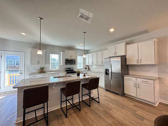This home features an inviting kitchen outfitted with stainless steel appliances and crisp white cabinetry that brightens the space and adds a modern touch. The open-concept layout flows seamlessly into spacious living areas adorned with LVP flooring, offering both durability and style. Upstairs is the expansive owner's suite with an attached master bath which has Walkin shower with dual vanity that provides a serene retreat with plenty of room to refresh and relax. Additionally outfitted with two more bedrooms with a common bath. The convenient first-floor media room is perfect for entertaining your friends and family. Washer/Dryer & Refrigerator are included.