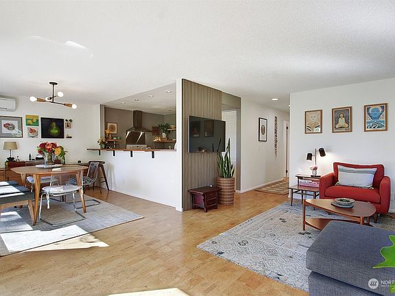 Welcome to this updated, 3 bedroom, 2 bathroom, spacious 1210 square foot condo w/2 parking spots. Located in the heart of downtown Bainbridge Island, this sought after condo includes a new efficient mini-split ductless heat pump, custom mantle & bar top. Year round natural light floods the interior space through picture windows & welcomes you into this corner, top floor condo. Designer paint colors, cork floors and recent upgrades add to the inviting, contemporary interior. Open floor plan w/adjoining kitchen & living areas. Garden/territorial views from various vantage points. Primary bedroom suite w/large walk-in closet & spacious bathroom. 2 year old sunny, private, South facing deck is a peaceful sanctuary for entertaining or relaxing.