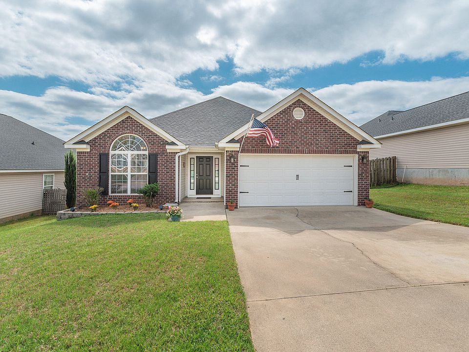 Welcome to Pamir Place in the heart of Grovetown, where charm, comfort, and smart living meet in this well-cared-for 3-bedroom, 2-bathroom ranch. Perfect for starter families, young professionals, or savvy investors, this home features tiled flooring in the wet areas, carpeted main living spaces, and soft neutral tones throughout. The great room greets you with a high vaulted ceiling and a cozy corner fireplace, flowing into an eat-in kitchen with bar top seating, a separate breakfast area, pantry, ample cabinet space, and all appliances included. The owner's suite offers large windows that invite natural light, a trey ceiling for added character, and a private ensuite bath with a jetted garden tub, separate shower, double sinks, and a spacious walk-in closet. Two additional bedrooms provide plenty of space for guests, children, or a home office. Step outside to enjoy a covered back patio porch and an easy-to-maintain yard, ideal for weekend gatherings or peaceful evenings. The double car garage adds both convenience and storage, completing a layout designed for everyday ease. Located just minutes from Fort Eisenhower (Gate 6), I-20, and top-rated Columbia County schools—and less than five minutes from the scenic Euchee Creek walking trails—this home is a place where memories are made, comfort is felt, and opportunity awaits. Schedule your showing today, don't let this opportunity wait.