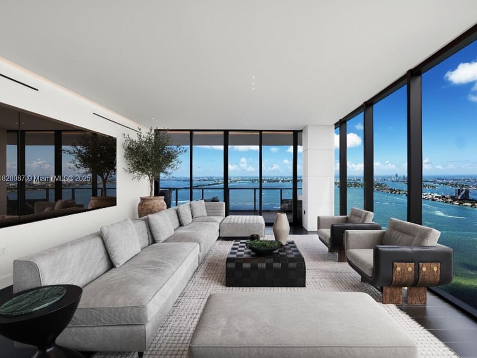 Unparalleled elegance meets sophistication in this one-of-a-kind residence. Customized & reconfigured into a 2BD layout with a theater w/ Mirro ceiling lighting system & custom blue velvet sofa that converts into a bed; expansive executive suite w/ a bespoke desk & ample seating by Monologue & StudioTwentySeven; a sophisticated library w/ custom shelving. Open living space is wrapped in floor-to-ceiling glass, revealing panoramic bay & city views. Custom-stained, burned, & wire-brushed oak floors by Urbanik Surfaces run throughout. The kitchen is a showpiece w/ Nuvolato Apuano marble countertops, Italian marble flooring, GAM Woodwork cabinetry & chef-grade appliances. The grand primary suite, accented w/ walnut paneling, features a waterfront terrace, spa-like bath, & custom wardrobe.