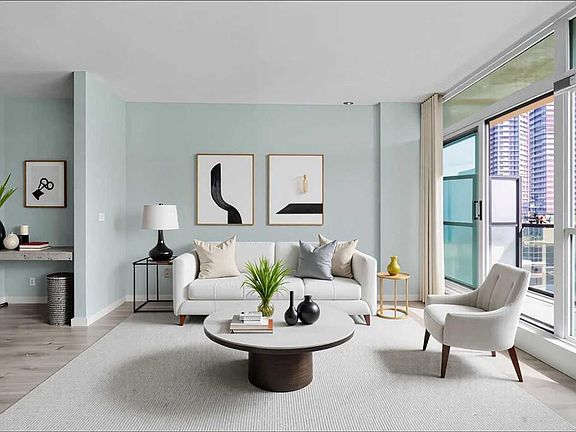 Contemporary floor planGranite countertopsStainless steel appliancesTile flooringFloor-to-ceiling windowsAir conditioningGood-sized bedroom