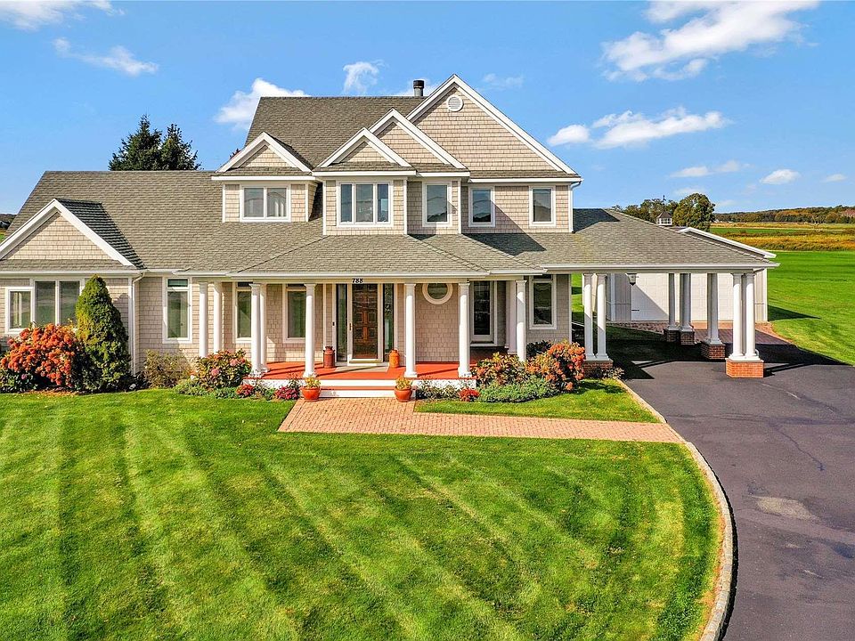 Pristine, ideal vacation home on an acre surrounded by preserved farmland. Enjoy expansive views to the north and south all within close proximity to award winning wineries, farm stands, fantastic restaurants, beaches and many golf courses including The Woods at Cherry Creek just 2 minutes away. The spacious home offers an open floor plan including large great room with fireplace and floor to ceiling windows offering wonderful natural light, kitchen with large island for entertaining and plenty of space for dining. The primary ensuite with king size bed is on the first floor with access to the back patio. Two additional guest bedrooms share a full bathroom on the second floor with a convenient loft/office. For additional living space, the basement is fully finished with plenty of room for entertaining. After a day of enjoying all the North Fork offers or exploring the South Fork, relax on the deck or patio overlooking bucolic farmland. Create great memories of your North Fork vacation. June - $10K, July $14K, August-LD - $15K. Please call for off season rates. Permit #23-0327.,
