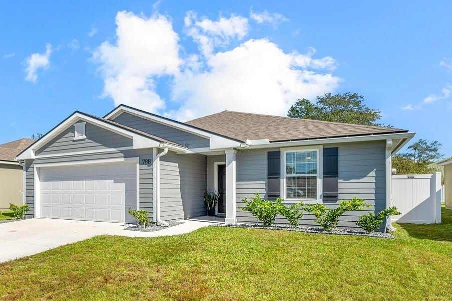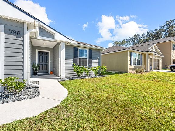 Better than new construction and lender incentive to buyer! Boasting numerous upgrades and lovingly maintained, 788 Riley Road is immaculate and move-in ready. The spacious Lismore floorplan offers thoughtfully designed open concept living. As you walk in from the front door, a large and welcoming foyer invites you in with views of the bright living space ahead, a bedroom on each side, a full bathroom, and a large laundry room. The well-appointed kitchen overlooks the living room and dining space with an ample center island, walk-in pantry, quartz counters, stainless-steel appliances, and views of the private backyard through the patio sliders. The primary bedroom is featured at back of the home and features a large walk-in closet and ensuite bath with recently updated premium double sink vanity, new mirrors, and lighting - you'll love enjoying a relaxing soak in the garden tub! The exterior of the home boasts charming curb appeal with a two-car garage, and newly updated front bed landscaping, and a full gutter system. At the end of the day, you will love relaxing in your fully fenced yard highlighting a newly installed extended paver patio - or maybe host a BBQ party! Rest assured you'll continue to have privacy, as the neighboring property in the back offers a sizeable buffer. Cameron Oaks has low HOA fees and NO CDD fee, is zoned for top-rated Clay County schools and is conveniently located near the Oakleaf Town center, offering a variety of shopping, restaurants, and entertainment. Just say Yes to the Address! With an accepted offer on 788 Riley Road, if the buyer uses Cara Potter with Future Home Loans, the lender will waive appraisal fee and no lender fees! Inquire with list agents for more details. {Lender offer is exclusive to this property listing only and working with Cara Potter, Mortgage Broker with Future Home Loans, exclusively. Offer is valid through 3/31/2024 and is contingent on buyer qualifying for mortgage terms and closing on the transaction. The buyer will pay for appraisal fee upfront and will be reimbursed the cost at closing}