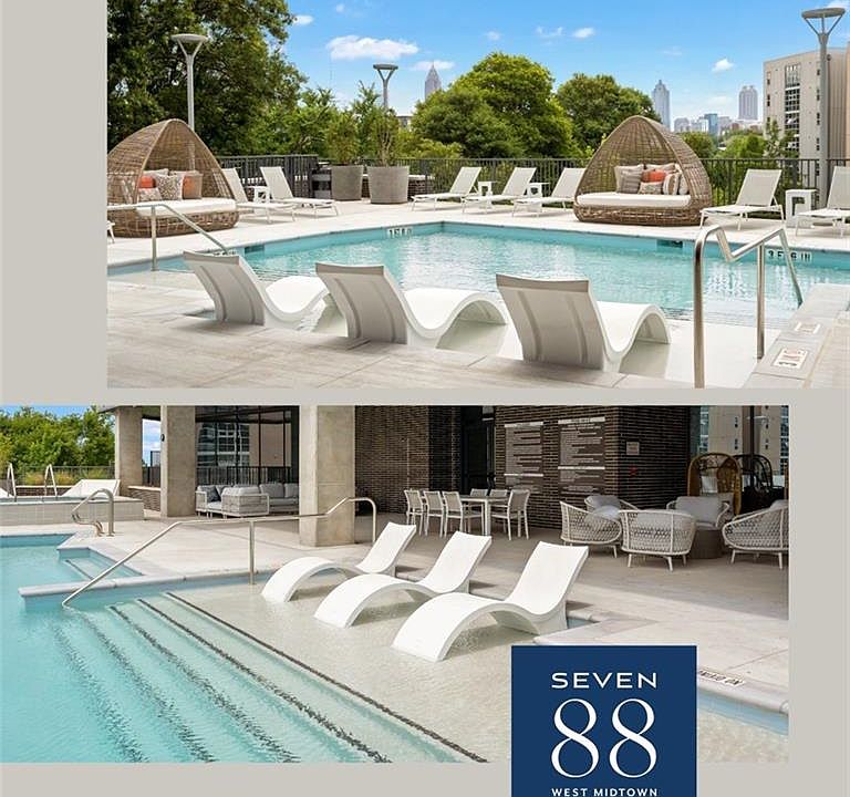 Seven88 West Midtown – Luxury high-rise condominium in the heart of West Midtown. Floor-to-ceiling windows span the entire unit, offering stunning sunrise and sunset views. Features modern finishes throughout, including quartz countertops, stainless steel appliances (refrigerator and full-size washer/dryer included),hardwood floors, and frameless glass shower. Secure access with 24-hour concierge. Resort-style amenities include a fitness center, heated saltwater pool, whirlpool spa, two outdoor grilling areas, and clubroom with billiards, lounge, shuffleboard, and TVs. Pet-friendly community with indoor dog park and spa. Walking distance to Westside Paper, shopping, dining, and minutes from the BeltLine and Westside Park.