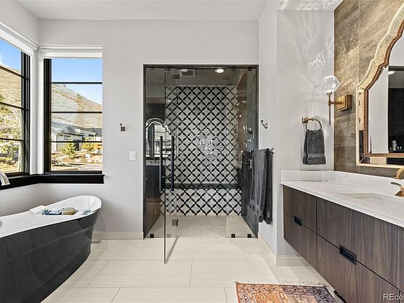 This custom built home embraces sheer elegance in a serene setting. The details in this home were sourced throughout the world are  and must be seen in person. 7880 sits on a coveted lot secluded in the back yard by trees with a perfect indoor outdoor flow from every level. Enter the custom front door and notice the mosaic detail in the entry that matches the stair risers on each level. Light shines thru the towering ceiling/windows to enjoy the indoor outdoor flow with an accordion door that completely slides the wall open to the oversized deck and highlights the Travertine marble wall over the fireplace to the ceiling. Luxury lives in the details of the kitchen with custom light blue cabinets. One of the highlights is the matching light blue La Cornue French Range. The oversized countertop with a custom leather end bar connects the spaces of living and kitchen seamlessly. The chef's kitchen was designed with purpose with hidden spice racks, abundance of storage and a tucked away pantry. Proceed to the primary suite w/ a gas fireplace and oversized layout. In the primary you will find dual closets, dual custom vanities, a custom soaking tub and an oversized steam shower. On the main level you will find a detailed half bath consisting of Indian balcony railings topped by a carved Travertine marble sink, and a gorgeous office with doors from India and a tin roof ceiling. Proceed up the hardwood stairs and be captivated by the stain glass window highlighting the details of the home. Upstairs you will find 2 oversized bedrooms both with en suite baths perfect for kids or family visiting to all be together. The walkout basement consists of a highly detailed bar and pool room, a gorgeous living area, a full bedroom with an en suite bath and a custom theatre with a projector and AV upgrades. The large driveway leads to an oversized 3 car garage. The lot has maturing trees with exterior access throughout but offers a sense of seclusion that is rare in Ravenna.