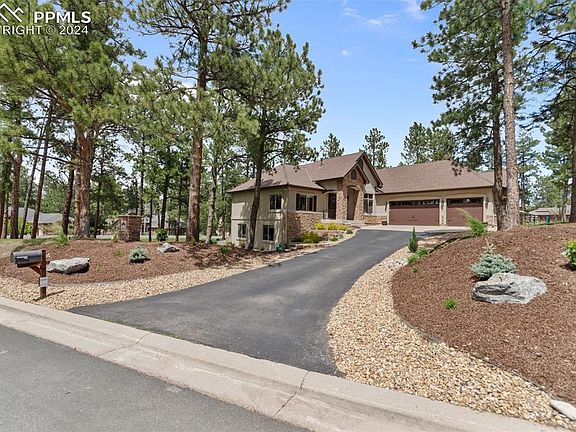 Nestled in the highly sought after neighborhood of Hidden Forest, this Larkspur gem offers the perfect blend of comfort, style and convenience.  Pride of ownership shines in this well-maintained ranch style home.  Step inside this inviting residence to discover a spacious layout designed to accommodate the needs of today's discerning homeowners. With 5 bedrooms, 5 bathrooms and 4,545 sq. ft. there's ample space to relax and unwind.  Whether you're preparing a gourmet meal or enjoying a casual breakfast, the kitchen is sure to impress with granite countertops and stainless steel appliances.  The well-designed open floorplan on the main level also boasts an office, formal dining room, great room with vaulted ceilings and beautiful stone fireplace, large master bedroom suite, laundry room and a secondary bedroom with a full bath. Step downstairs to find 3 additional bedrooms (5th bedroom is currently being used as a home gym) 2 more bathrooms, a wet bar and a large space for entertaining.   Brand new carpet was also just installed throughout the home!  Head outside to the 1/2 acre oasis where you'll find the beautiful professionally landscaped yard with abundant wildlife passing through. Unwind after a long day by the oversized gas fire pit on the large back patio or enjoy dinner on the deck. 20 minutes to Castle Rock and Monument, 30 minutes to DTC. Don't miss out on this incredible opportunity, schedule a showing today!