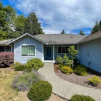 Beautiful 3 bedrooms with 2.5 bathrooms, 2,136 sq.ft single level home with inviting covered porch and entry. Welcoming and light filled with many surrounding windows and views to gardens and yard. Extra spacious living room with nice propane fireplace. Open formal dining room, plus an office with French Doors. Extra nice kitchen with hardwood flooring and great stainless appliances, including a 6 burner propane stove and double ovens and refrigerator. Wrap around counter and space for pull up seating. Eat-in area for table and chairs. French Doors lead outside to double private tiered back yard decks. One deck is covered for all seasons and the other is open. Wonderful size primary bedroom with sitting area, walk-in closet, and a spacious bathroom en-suite with nice tub, separate shower and double sinks vanity with lots of storage. Includes a door access to and from the decks and back yard. Nice half bathroom for guests. Additional 2 bedrooms with great Jack and Jill full bathroom and separate individual sinks off of each bedroom. Good closet space throughout. Nicely planted gardens, raised vegetable beds, and a fruit tree orchard with many varieties on over an acre of land. 3-car attached garage with built-in storage, and nice outdoor RV parking area with its own side yard driveway. A portion of the back yard is fully fenced. Cat or dog welcome with a $500 pet deposit per pet. Rent includes landscape maintenance and septic. Tenant to please provide yard waste bin and haul away service. Quick drive into downtown Kingston and ferries to Edmonds. Puget Sound waterfront, Kingston schools, community center, library and many other businesses and services are easily available in all directions.
