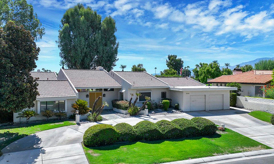 Welcome to 78805 Saint Thomas Drive, a spacious single-level residence in the heart of Bermuda Dunes Country Club, offering the perfect blend of comfort, privacy, and resort-style living. Positioned on an oversized 13,500+ sq. ft. lot, this 3,512 sq. ft. home showcases breathtaking golf course and mountain views from its enviable location along the 16th fairway and green.Arrive through a circular driveway and double-door entry into a bright, open floor plan designed for both casual relaxation and elegant entertaining. The home features 3 generously sized bedrooms and 3 bathrooms, including a primary suite with fireplace. Multiple living and gathering spaces--including a great room, family room, wet bar, and a formal dining room--create flexibility for every lifestyle.The chef's kitchen is complemented by ample cabinetry and built-in appliances, while sliding glass doors lead to a covered patio overlooking the sparkling private pool and spa. Expansive windows invite natural light and frame serene fairway and mountain vistas, creating a seamless indoor/outdoor living experience. And a brand-new roof has just been installed, ensuring peace of mind for years to come. Enjoy the benefits of low HOA dues--just $214 per month--which include Spectrum cable with premium movie, sports and music channels, high-speed internet, and 24-hour guard-gated security. Residents also appreciate the cost savings of IID electric service. Whether hosting family and friends or simply enjoying the tranquility of your private retreat, this home embodies the relaxed sophistication of desert living. Located minutes from dining, shopping, and world-class golf, 78805 Saint Thomas Drive offers a rare opportunity to own a premier property in Bermuda Dunes Country Club.