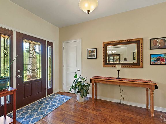 Welcome to your dream retreat! Nestled on 14 acres of serene countryside, this 2,300 square foot brick home offers the perfect blend of luxury, privacy, and functionality. Located across the street from the picturesque Blackwater State Forest in Baker, this property is an oasis for nature lovers, horse enthusiasts, and those seeking a peaceful lifestyle. The home features four spacious bedrooms and three and a half bathrooms, providing ample space for family and guests. As you step inside, you'll be greeted by a grand living area with soaring 22-foot vaulted ceilings, complemented by a stunning masonry wood-burning fireplace that reaches all the way to the ceiling. The engineered hardwood floors add warmth and elegance throughout, while the built-in surround sound system enhances your entertainment experience. French doors lead you from the living area to a covered patio, perfect for enjoying your morning coffee while taking in the beauty of the surrounding nature. The property is a wildlife haven, with frequent sightings of deer, ducks, and birds right in your backyard. The master suite is a true retreat, featuring a tray ceiling with soft rope lighting for a touch of ambiance. The luxurious master bath includes a jetted garden tub, a separate walk-in tiled shower with a bench, and luxurious heated floors. Equipped with a generator, this home ensures you're always prepared. The attached two-car garage offers convenience, while the extensive outdoor facilities make this property truly unique. The large metal barn is ready for your RV with hookups in place, and the horse stable is a dream for equestrians, complete with four stalls, a tack room with water and electricity, and a loft capable of holding over 300 bales of hay. The adjacent fertilized horse pasture is perfect for your horses to graze. With approximately 10 acres cleared and ready for use, this property provides endless possibilities. Whether you're looking to explore the nearby forest, tend to you