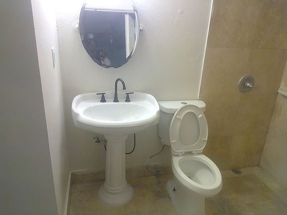 Recently updated. Freshly painted, new kitchen cabinets, toilet and vanity. Ceiling fans. Burglars' bars. Storage house in back. Central air/heat. New tile floors only. Double driveway in front of house. Screens shield for sun. Appliances needed. On bus line Renter is responsible for all utilities, appliances, yard maintenance.