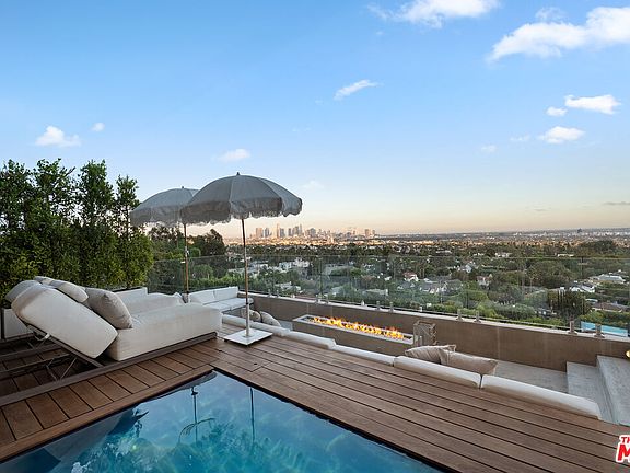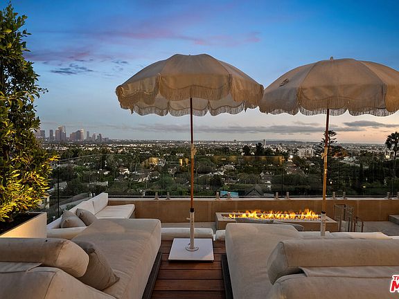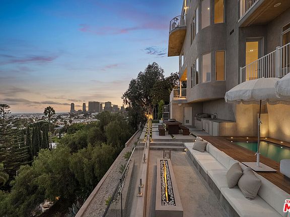 This privately-gated and former celebrity-owned contemporary hideaway sits above it all, with jetliner views stretching from Downtown LA to Century City and out to the ocean. Framed by a dramatic pivot door, the designer-done home opens to soaring ceilings, smooth Venetian plaster, hardwood floors, and sun-drenched interiors that exude a sophisticated and organic feel. The main level showcases a spacious formal living room that flows seamlessly into the dining area and chef's kitchen, designed for both effortless entertaining and everyday living. The relaxing primary suite offers a travertine-cladded spa-like bathroom with walk-in shower and separate soaking tub, a picture window framing endless panoramic vistas, and an oversized walk-in closet. Two additional guest bedrooms are replete with en-suite baths and private balconies, with an additional flexible space that can serve as a screening room, office, or fourth bedroom. Outdoors, this estate takes entertaining to the next level with a newly added outdoor kitchen/BBQ, in-ground spa, sauna, outdoor shower, and dramatic outdoor fireplace with built-in seating providing the perfect stage for al-fresco dining, sunset gatherings, or simply unwinding above the city lights. With a prestigious history, unmatched style, and coveted location just moments from the Sunset Strip and West Hollywood, this residence is truly a private retreat set against one of the most breathtaking backdrops in Los Angeles.