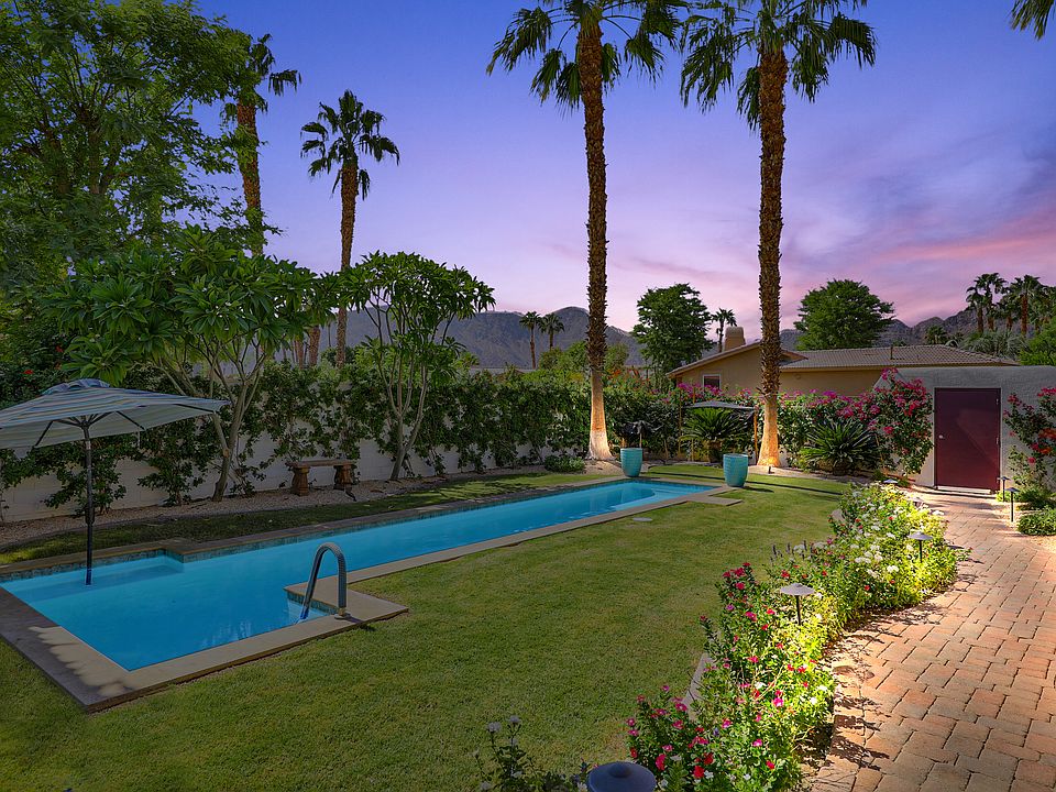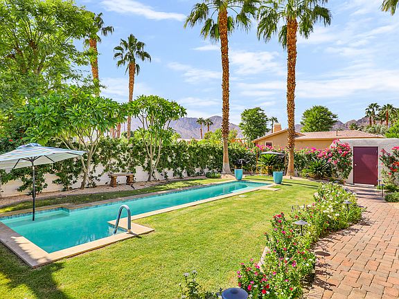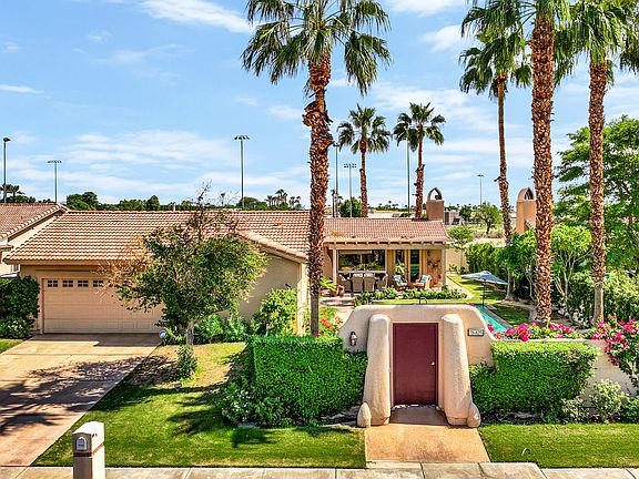Welcome to the perfect desert retreat and an unbeatable lifestyle. This stunning home offers 3-bedrooms, and 2 bathrooms in Rancho La Quinta Country Club. Features include breath taking views of the Santa Rosa mountains from the front and back yard. Step outside to your own private resort style oasis featuring a salt water pool, lush and tropical landscaping, privacy and serene, a beautiful patio area for your outdoor entertaining, along with a BBQ for those nights you want to enjoy the good life!. The Interior features an upgraded kitchen with granite countertops, stainless steel appliances, and a breakfast bar. The main Living room area boasts elegant Versailles- pattern travertine flooring, and features a beautiful focal point fireplace. The bedrooms are carpeted comfortably and furnished chic and stylish. The Master bedroom has a private en-suite with a soaking tub and shower, and upgraded with granite counters and travertine floors. This home is available for seasonal lease March and April 2026. Come enjoy the beauty of Rancho La Quinta Country Club for your next relaxing vacation! This home is ideally located in the heart of La Quinta. Walk or bike to Charming Old Town, and the famous La Quinta Resort, plenty of hiking trails, and close by are world renowned golf courses, you will find top rated restaurants & vibrant entertaining. Just minutes away you will discover El Paseo shopping district and the BNP Tennis tournament is just down the street.
