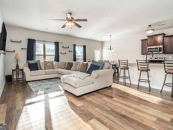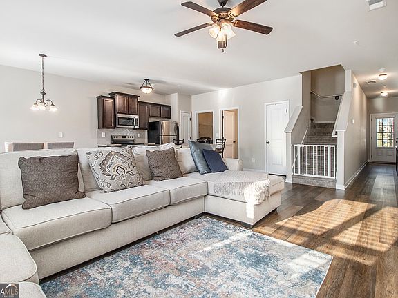 Welcome to 7883 Rock Rose Lane in Fairburn! Built in 2019, this beautiful home blends modern design with comfort and convenience. The open concept floor plan features a spacious living area that flows seamlessly into the stylish kitchen, complete with a large island that is perfect for cooking, dining, and entertaining. Upstairs, a generous loft or flex space provides endless possibilities whether you need a second living room, playroom, home office, or media area. The primary suite is a true retreat, featuring vaulted ceilings, two closets one being a walk-in, and a private en suite bathroom. Additional bedrooms offer flexibility for family, guests, or workspace. Step outside to enjoy the private backyard, ideal for gatherings, gardening, or simply unwinding at the end of the day. Nestled in a quiet cul de sac at the end of the neighborhood, this home offers both privacy and charm. Located just minutes from shopping, dining, schools, and major highways, the convenience cannot be beat. Whether you are a first time buyer or looking for more room to grow, 7883 Rock Rose Lane is a wonderful opportunity to make Fairburn your home. Schedule your showing today!