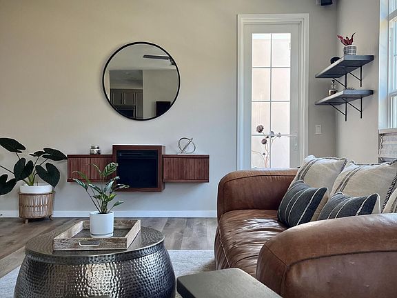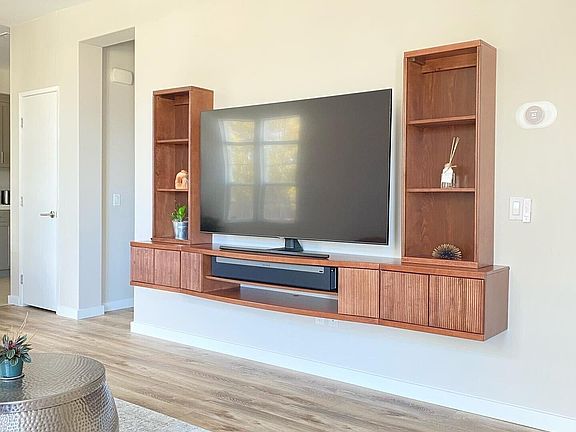Recent upgrades include luxury vinyl plank flooring, freshly painted kitchen and bathroom, custom electrical outlets for audio/visual connections, and dimming LED recessed lighting. The condo is equipped with modern conveniences like Wi-Fi fans, Google Nest, smart lighting, and fiber internet readiness. The bedroom has blackout shades and a closet system for optimal organization. The garage has epoxy-coated flooring and mounted storage shelving. Additionally, dog-friendly trails on the property make this a great option for pet owners.