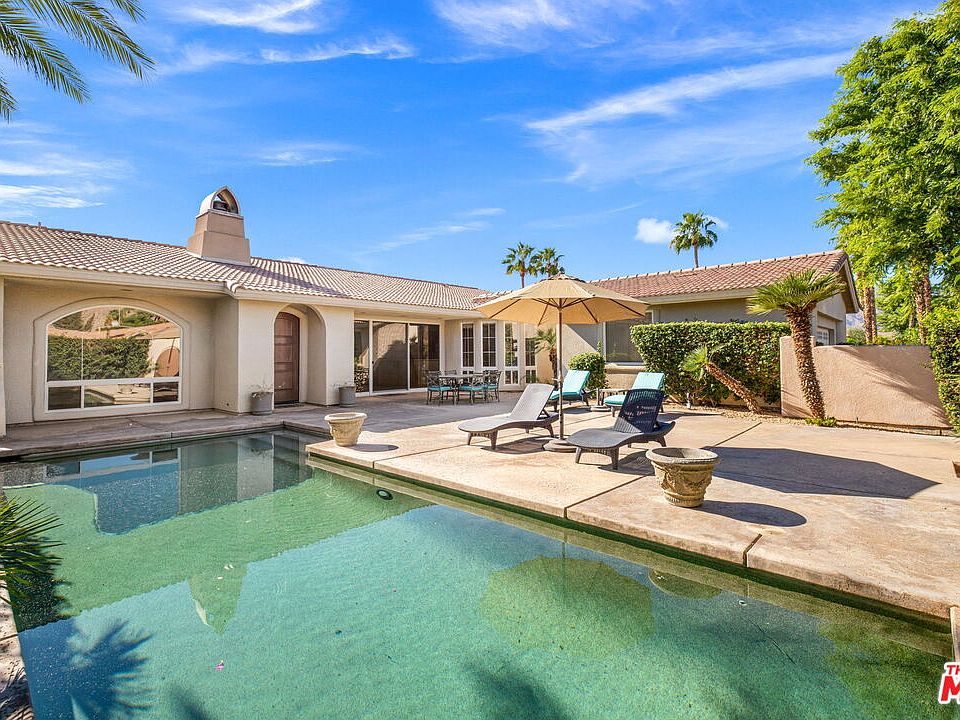 Welcome to this charming single-story residence in the prestigious guard-gated community of Rancho La Quinta, located within the highly desirable 'Ventanas' enclave. This beautifully maintained home offers three spacious bedrooms and a large, open-concept floor plan designed to maximize natural light and effortless flow. At the heart of the home, a generous formal living room and elegant dining area provide the perfect setting for both entertaining and everyday living. The spacious kitchen is thoughtfully designed with abundant counter space, ample cabinetry, and a convenient breakfast bar for casual dining. The primary suite features a remodeled bathroom with a soaking tub, double vanity, and a modern, spa-like ambiance. A versatile den within the suite offers the perfect space for a home office or a cozy in-room sitting area. Outdoors, the easy-to-maintain yard offers a sparkling swimmer's pool and large patio - ideal for both relaxation and entertaining. Residents of Rancho La Quinta enjoy world-class amenities including championship golf courses, a stunning clubhouse, recreation and fitness centers, resort-style pools and spas, and the added peace of mind of 24/7 guard-gated access and security patrols. This property blends comfort, style, and an unmatched lifestyle in one of La Quinta's most sought-after communities.