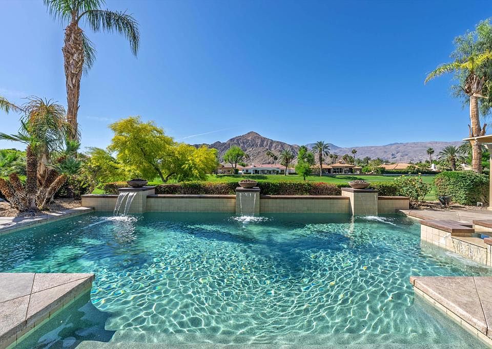 A One-of-a-Kind Entertainer's Dream in The Citrus Club. Enter into unparalleled luxury with this spectacular estate in The Citrus Club, offering breathtaking southern mountain views and an enviable location along the 5th fairway of the famed Citrus Course. This home is a true entertainer's paradise, designed for those who appreciate the finest in indoor-outdoor living. The expansive backyard is your private oasis, complete with a full outdoor kitchen, private pool/spa, fireplace, misters, fire bowls, and built-in TV area--perfect for hosting unforgettable gatherings. Enjoy the tranquil sounds of a cascading waterfall into a serene pond, relax under automated awnings, and take in the picturesque golf course and mountain views that make this property unique. Inside, the well-designed open floor plan offers an effortless flow for entertaining, featuring a bar area and a custom temperature-controlled wine room for your finest collection. The chef's kitchen is elegant and functional, with high-end finishes and ample space for culinary creations. The home is adorned with high ceilings, newly painted interior, crown molding, travertine flooring, and custom woodwork, elevating its luxurious feel. 3 Air conditioners were recently replaced, giving you added comfort. For the ultimate entertainment experience, enjoy movie nights like never before with a custom projector and theater-size screen. Multiple fireplaces throughout create warmth and ambiance, while spacious en-suite bedrooms with walk-in closets provide comfort and privacy for guests. The oversized laundry room and 4-car garage offer added convenience. Located on one of the most desirable streets in The Citrus Club, this home enjoys extra privacy with no homes directly across from it. With low HOA fees and proximity to Old Town La Quinta, fine dining, shopping, and La Quinta Resort, this is a rare opportunity to own a truly one-of-a-kind residence. This home must be seen in person to appreciate its grandeur fully. Don't miss your chance to own this extraordinary entertainer's dream in The Citrus Club!