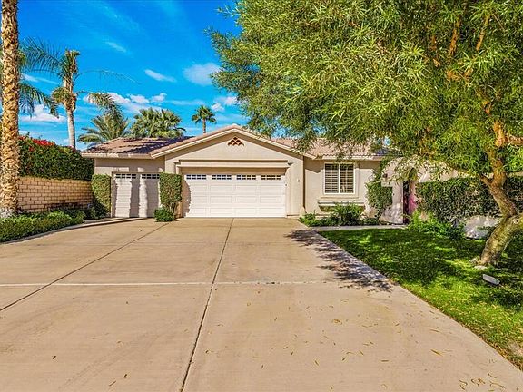 Welcome to your next chapter in the Ventanas at Rancho La Quinta Country Club. This turnkey furnished Malaga home sits on a private, oversized cul-de-sac lot. The experience begins in the tranquil courtyard, leading to an interior defined by abundant natural light and seamless tile flooring. This is a home built for celebration; imagine hosting family and friends from the gourmet kitchen, equipped with a Viking range and hood, dry bar, and wine chiller. The true heart lies outside, where the oversized yard offers an unforgettable retreat. Picture yourself relaxing in the freeform Pebble Tec pool and spa, watching spectacular desert sunsets over the Santa Rosa Mountains. The built-in barbecue and shaded patio are ideal for al fresco dining. The primary suite is a sanctuary with a soaking tub and dual vanities. Featuring three bedrooms, three bathrooms, and a three-car garage with epoxy floors and custom cabinetry, every detail is accounted for. This property is a gateway to the quintessential Rancho La Quinta lifestyle, all presented with contemporary furnishings and the potential for future expansion on one of the largest lots. Come, write your story here.