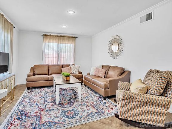 Enjoy over $100K in quality upgrades throughout this beautiful home featuring 3 bedrooms, 2 updated bathrooms, attached 2 car garage, brand new designer kitchen, dual pane windows, forced heat & A/C, plumbing re-piped thru attic, and new porcelain tile flooring. Convenient location tucked into a lovely, south Mira Mesa neighborhood close to award winning Jonas Salk Elementary. Delightful kitchen and bedroom views out over your rare, oversized, south facing backyard with lush landscaping. Garden, play, pick fruit, watch the sunset and entertain in your private oasis with raised deck and recently painted fence.