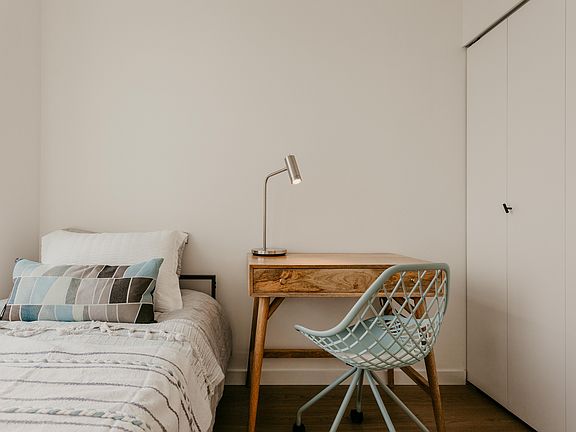 * Bedroom 1: queen-size bed, premium quality mattress, with work space and closet space and an ensuite.